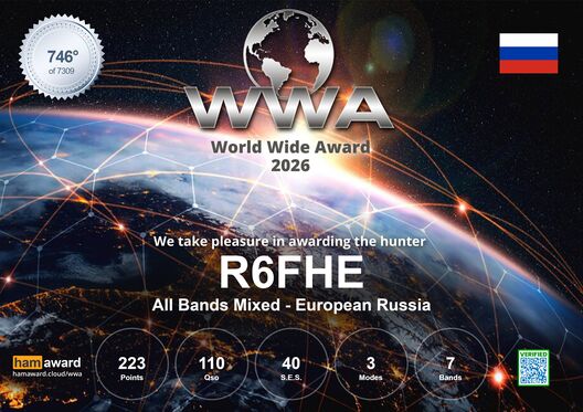 MyQSL / R6FHE / Дипломы, сертификаты, свидетельства