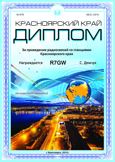 MyQSL / R7GW / Дипломы, сертификаты, свидетельства