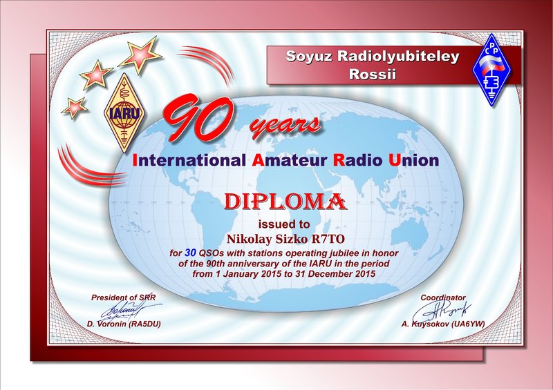 Полноцветный диплом в электронном виде будет выдаваться всем радиолюбителям
