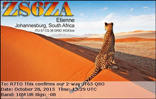 R7TO DE ZS6ZA , JT65 on 10M