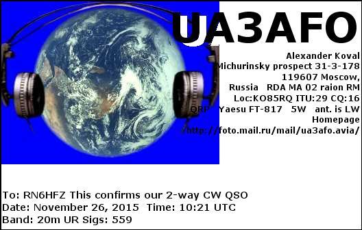 RN6HFZ DE UA3AFO , 20M