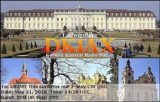 us2mt DE DK1AX , CW on 20M